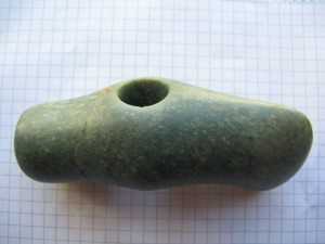 Я спросил у тетеньки-музейного работника, при помощи чего люди каменного века делали такие отверстия. В ответ она указала на сделанную археологами симуляцию «древнего станка по сверлению топоров». «Станок» представляет собой нечто типа лучковой пилы, где вместо сверла — берцовая кость, а в лунку по мере сверления подсыпается абразив — песочек. Всплакнув по бедным археологам, которым приходится изыскивать объяснения и даже мастерить «станки» из костей, я ушел из музея 🙂