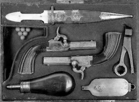 «Дорожный гарнитур», детский с капсюльными пистолетами калибра 11 мм и кинжалом. Изготовлен в России в 30–40-х годах XIX века