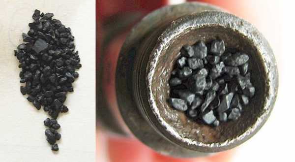 Отмеренная порция пороха засыпается в казенную часть пистолета.