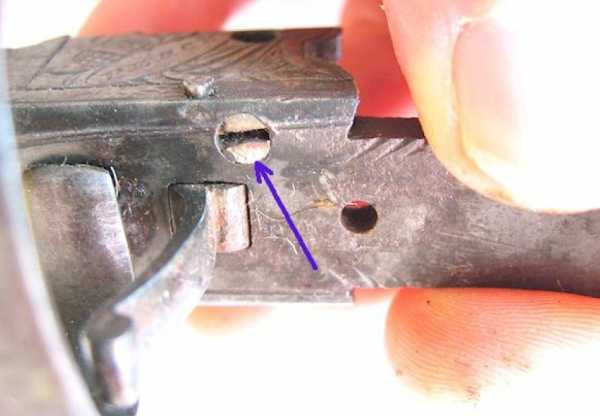 Ось курка выполнена в виде винта, головка которого располагается с левой стороны рамки.