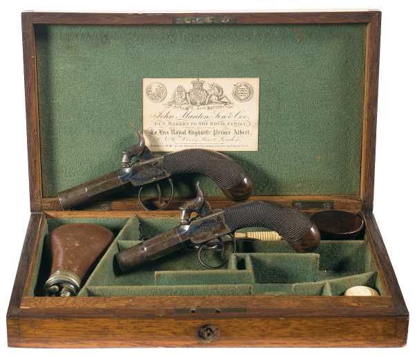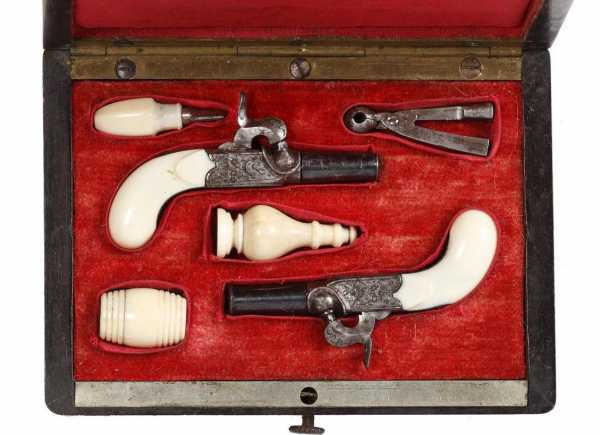 Пары пистолетов в оружейных ящиках с полным комплектов аксессуаров представляют собой предмет мечты не только отдельных коллекционеров, но и крупных музеев. Если это оружие еще и украшено позолотой, гравировкой, вставками из драгоценных камней или слоновой кости, то стоить оно может целое состояние.