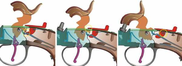 Предохранитель можно было включить при положении курка на полувзводе (предохранительном взводе).
