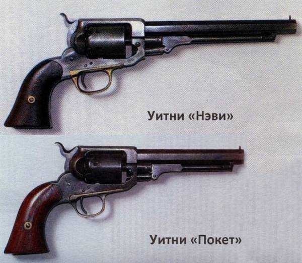 В это время за рубежом уже громко заявляют о себе капсюльные револьверы. Револьверное оружие с вращающимся многокаморным барабаном изготавливалось уже в XVI в. Известны опыты Н. Цуркиндена в Берне с установкой барабана на пистолет в 1584 г. В XVII в. европейские и русские мастера уже снабжали штучные кремневые пистолеты барабанами на несколько камор с боевыми зарядами и затравочными полками. Известен, например, шестизарядный кремневый револьвер, изготовленный мастером московской Оружейной палаты Первушей Исаевым в первой четверти XVII в. — «пистолет о шти зарядах Первого дела Исаева; станок яблоневый почернен, оправа серебреная в десяти местах резная» (причем этот револьвер считается первым известным образцом оружия с «батарейным» замком русского производства). Но при технологиях того времени столь сложное оружие было, скорее, дорогой диковинкой. Только в XIX в., с распространением методов машинного производства, постановкой сталелитейного дела, машиностроения и станкостроения, появилась возможность обеспечить достаточную точность изготовления и надежность работы механизмов, и револьверы смогли стать массовым оружием. В 1835 г. в Великобритании, а в 1836-м — в США Самуэль Кольт берет патент на новую схему капсюльного револьвера. В 1837 г. в США появляется первый револьвер производства Кольта со съемным барабаном. Каждая из пяти камор барабана имела брандтрубку в казенной части, установленную по оси каморы. Камора заряжалась порохом и пулей с дульной части подобно стволу дульнозарядного пистолета, после чего на брандтрубки надевались капсюли. Поворотный курок размещался в середине металлической рамки, в рамке монтировался и спусковой механизм, что способствовало надежности работы и безопасности стрелка. Эта схема, разработанная Дж. Пирсоном, оказалась многообещающей. Интересно, что в том же году Э. Аллен патентует многоствольный самовзводный капсюльный пистолет. Однако схема револьвера обещает больше выгод, и с 1847 г. начинается буквально победное шествие «кольтовских» револьверов. С середины XIX в. отчетливо намечается разделение личного оружия на «пистолеты» и «револьверы» — по крайней мере, в российской терминологии (в Великобритании и США револьверы и много позже официально именовались Pistol). В разных странах начали выпуск копий «кольтовских» револьверов. Не стоят на месте и европейские конструкторы: в 1839 г. начинается выпуск образцов Ж. Мариэтта с поворотным блоком стволов, в 1851 г. — револьверов Р. Адамса с цельной рамкой. На рынке тяжеловатые многоствольные «мариэттты», «бундельревольверы» и «пепербоксы» («перечницы», тип оружия, появившийся в Великобритании в 1780-1800 гг.) с вращающимся на продольной оси блоком стволов получили определенный успех, поскольку были безопаснее барабанных — при нескольких стволах не приходилось думать о соосности каморы и ствола, при воспламенении капсюлем нескольких зарядов стрелок не рисковал ранением срикошетившей пулей или осколком рамки. Многоствольные револьверы системы Мариэтта были популярны и в России — вспомним, как в поэме Некрасова «Кому на Руси жить хорошо» испуганный крестьянами-странниками помещик «пистолетик выхватил, как сам, такой же толстенький, и дуло шестиствольное на странников навел». Эти «револьверные пистолеты» оставались на руках очень долго. 24 января 1878 г. им