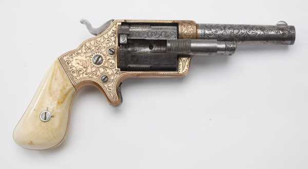 Использование унитарного патрона, заряжавшегося в бврабан с казны, было уже запатентовано до 1872 года Ролином Уайтом, оперативно продавшим его компании Смит и Вессон, уже имевшей сходный патент. Такие револьверы теперь могла делать только одна фирма, а остальные, четко осознавая преимущества револьвера под унитарный патрон, были вынуждены или производить устаревающие капсюльные модели, дожидаясь истечения срока патента, или же мудрствовать лукаво, обходя патент.
