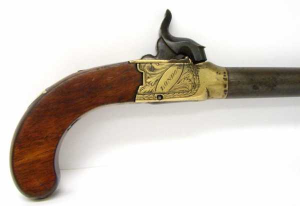 Смена кремневого способа воспламенения порохового заряда капсюльным отразилась на конструкции большинства оружия. Дорожные кремневые пистолеты с замком boxlock (boxlock pistol flintlock) пользовались огромной популярностью, поэтому логичным является появление в этом оружии капсюльного ударного замка.
