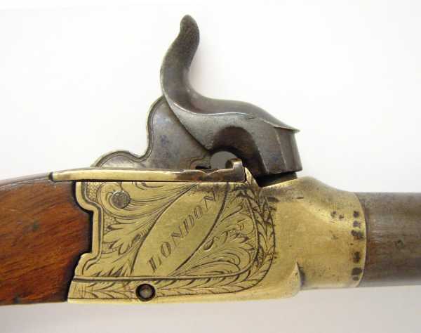 Данный пистолет, один из ранних, он был изготовлен на английском предприятии Джозеф Вуд и Сын в Йорке (Joseph Wood & Son of York) примерно в 1830—1848 годах. Калибр ствола 0.50, металлические поверхности оружия покрыты гравировкой, на рамке сцены британской колониальной тематики.