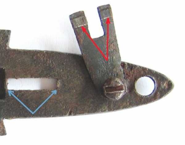 Положения кнопки предохранителя ограничивала пружина с выступом, расположенная внутри рамки.