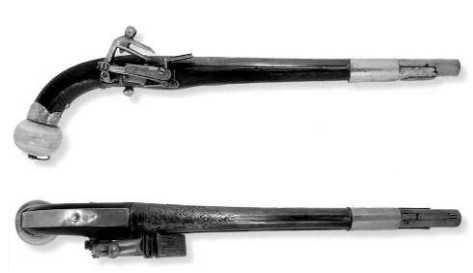 Превращение пистолета в карабин с помощью отъемного приклада было довольно популярно. Пример тому — итальянский кавалерийский кремневый пистолет производства середины 1840-х годов