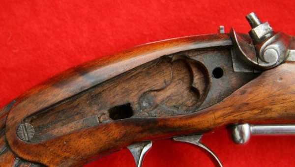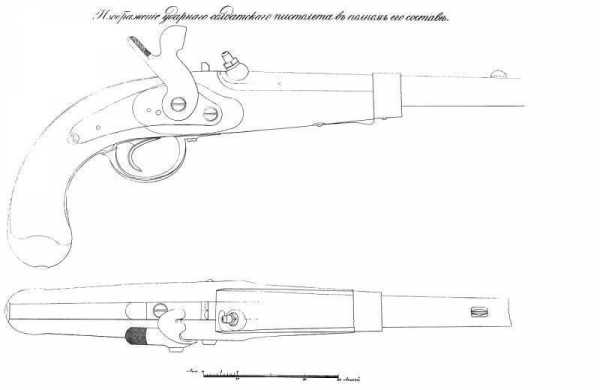 ΠΠΎΠΆΠ΅ ΠΊΠ°ΠΏΡΡΠ»ΡΠ½ΠΎΠ³ΠΎ ΠΏΠΈΡΡΠΎΠ»Π΅ΡΠ° ΠΎΠ±ΡΠ°Π·ΡΠ° 1848 Π³ΠΎΠ΄Π°, ΠΏΡΠ΅Π΄ΡΡΠ°Π²Π»Π΅Π½Π½ΠΎΠ΅ Π½Π° ΡΠΎΡΠΎ, Π²Π΅ΡΠΎΡΡΠ½Π΅Π΅ Π²ΡΠ΅Π³ΠΎ Π½Π΅ ΠΎΡΠΈΠ³ΠΈΠ½Π°Π»ΡΠ½ΠΎΠ΅, Π° Π½ΠΎΠ²ΠΎΠ΄Π΅Π»ΡΠ½ΠΎΠ΅, ΠΎΠ΄Π½Π°ΠΊΠΎ ΠΎΠ½ΠΎ ΠΏΠΎΠ·Π²ΠΎΠ»ΡΠ΅Ρ ΠΏΡΠΎΠΈΠ»Π»ΡΡΡΡΠΈΡΠΎΠ²Π°ΡΡ ΠΊΠΎΠ½ΡΠΈΠ³ΡΡΠ°ΡΠΈΡ ΡΡΠΊΠΎΡΡΠΊΠΈ ΠΈ ΡΠ΅Π²ΡΡ ΠΏΠΈΡΡΠΎΠ»Π΅ΡΠ°. ΠΠΎΠΆΠ΅ ΠΈΠΌΠ΅Π΅Ρ Π²ΡΡΠ΅Π·Ρ Π΄Π»Ρ ΡΠΎΠ³ΠΎ ΡΡΠΎΠ±Ρ ΡΠ°Π·ΠΌΠ΅ΡΡΠΈΡΡ ΡΡΠ²ΠΎΠ» ΠΏΠΈΡΡΠΎΠ»Π΅ΡΠ°, Π·Π°ΠΌΠΎΠΊ, Π·Π°ΠΌΠΎΡΠ½ΡΡ ΠΈ ΡΠΏΡΡΠΊΠΎΠ²ΡΡ Π»ΠΈΡΠΈΠ½Ρ, Ρ Π²ΠΎΡΡΠΎΠ²ΠΈΠΊ ΠΊΠ°Π·Π΅Π½Π½ΠΎΠ³ΠΎ Π±ΠΎΠ»ΡΠ°, Π·Π°ΡΡΠ»ΡΠ½ΠΈΠΊ ΡΡΠΊΠΎΡΡΠΊΠΈ, ΡΠΈΠΊΡΠΈΡΡΡΡΠ΅Π΅ ΠΊΠΎΠ»ΡΡΠΎ ΡΡΠ²ΠΎΠ»Π°. Π ΡΠΎΠΎΡΠ²Π΅ΡΡΡΠ²ΠΈΠΈ Ρ Β ΠΏΠΎΡΡΡΠΎΠΈΡΠ΅Π»ΡΠ½ΡΠΌΠΈ ΡΠ°Π±Π»ΠΈΡΠ°ΠΌΠΈ ΠΊ ΠΏΠΈΡΡΠΎΠ»Π΅ΡΡ, Π»ΠΎΠΆΠ΅ Π΄ΠΎΠ»ΠΆΠ½ΠΎ Π±ΡΡΡ Π²ΡΠΏΠΎΠ»Π½Π΅Π½ΠΎ ΠΈΠ· Π΄ΡΠ΅Π²Π΅ΡΠΈΠ½Ρ Π±Π΅ΡΠ΅Π·Ρ ΠΈ ΠΎΠΊΡΠ°ΡΠ΅Π½ΠΎ ΡΠ΅ΡΠ½ΠΎΠΉ ΠΊΡΠ°ΡΠΊΠΎΠΉ.