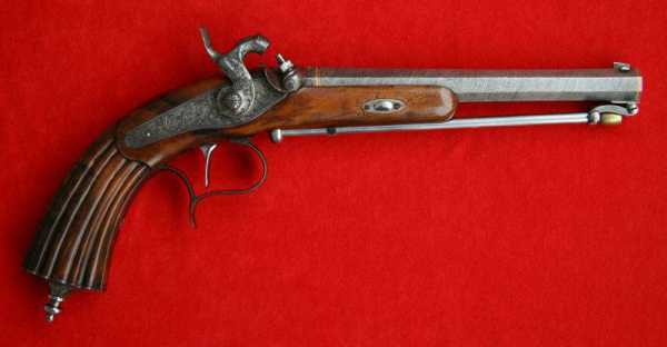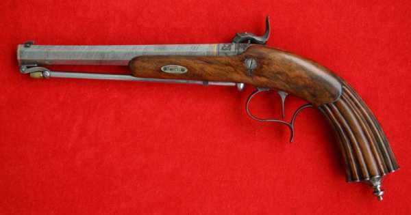 Π ΡΡΡΠΊΠΈΠΉ ΡΠΎΠ»Π΄Π°ΡΡΠΊΠΈΠΉ ΠΊΠ°ΠΏΡΡΠ»ΡΠ½ΡΠΉ ΠΏΠΈΡΡΠΎΠ»Π΅Ρ ΠΎΠ±ΡΠ°Π·ΡΠ° 1848 Π³ΠΎΠ΄Π°Β ΠΈΠΌΠ΅Π΅Ρ ΠΎΠ±ΡΡΡ Π΄Π»ΠΈΠ½Ρ 40,4 ΡΠΌ (15 Π΄ΡΠΉΠΌΠΎΠ² 9 Π»ΠΈΠ½ΠΈΠΉ), Π΄Π»ΠΈΠ½Ρ ΡΡΠ²ΠΎΠ»Π° 24,4 ΡΠΌ (9 Π΄ΡΠΉΠΌΠΎΠ² 6 Π»ΠΈΠ½ΠΈΠΉ), ΠΊΠ°Π»ΠΈΠ±Ρ ΡΡΠ²ΠΎΠ»Π° 18 ΠΌΠΌ (7,1 Π»ΠΈΠ½ΠΈΠΉ). ΠΠ°Π½Π°Π» ΡΡΠ²ΠΎΠ»Π° Π³Π»Π°Π΄ΠΊΠΈΠΉ, Π²Π΅Ρ ΠΏΠΈΡΡΠΎΠ»Π΅ΡΠ° 1390 Π³ΡΠ°ΠΌΠΌ (3 ΡΡΠ½ΡΠ° 38 Π·ΠΎΠ»ΠΎΡΠ½ΠΈΠΊΠΎΠ²).