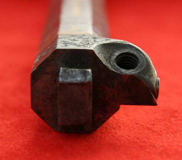 Π‘ΡΠ²ΠΎΠ» ΡΠ°ΡΡΠΈΡΡΠ΅ΡΡΡ Π² ΠΊΠ°Π·Π΅Π½Π½ΠΎΠΉ ΡΠ°ΡΡΠΈ ΠΈ Ρ Π΄ΡΠ»ΡΠ½ΠΎΠ³ΠΎ ΡΡΠ΅Π·Π°. Π‘Π°ΠΌΠ°Ρ ΡΠΎΠ½ΠΊΠ°Ρ ΡΠ°ΡΡΡ ΡΡΠ²ΠΎΠ»Π° ΡΠ°ΡΠΏΠΎΠ»ΠΎΠΆΠ΅Π½Π° Π½Π° ΡΠ°ΡΡΡΠΎΡΠ½ΠΈΠΈ ΠΏΡΠΈΠΌΠ΅ΡΠ½ΠΎ Π² ΒΌ Π΄Π»ΠΈΠ½Ρ ΡΡΠ²ΠΎΠ»Π°, ΡΡΠΈΡΠ°Ρ ΠΎΡ Π΄ΡΠ»ΡΠ½ΠΎΠ³ΠΎ ΡΡΠ΅Π·Π°. Π Π½ΠΈΠΆΠ½Π΅ΠΉ ΡΠ°ΡΡΠΈ ΡΡΠ²ΠΎΠ»Π° Π² ΠΏΠ°Π· Β«Π»Π°ΡΡΠΎΡΠΊΠΈΠ½ Ρ Π²ΠΎΡΡΒ» ΡΡΡΠ°Π½ΠΎΠ²Π»Π΅Π½ΠΎ ΡΡΠΊΠΎ Ρ ΠΏΡΡΠΌΠΎΡΠ³ΠΎΠ»ΡΠ½ΡΠΌ ΠΎΡΠ²Π΅ΡΡΡΠΈΠ΅ΠΌ Π΄Π»Ρ ΠΊΡΠ΅ΠΏΠ»Π΅Π½ΠΈΡ ΡΡΠ²ΠΎΠ»Π° ΠΊ Π»ΠΎΠΆΡ Ρ ΠΏΠΎΠΌΠΎΡΡΡ ΠΏΠ»ΠΎΡΠΊΠΎΠ³ΠΎ ΡΠΈΠΊΡΠΈΡΡΡΡΠ΅Π³ΠΎ ΠΊΠ»ΠΈΠ½Π° (Π·Π°Π΄Π²ΠΈΠΆΠΊΠΈ). Π£ΡΠΊΠΎ Π΄Π»Ρ ΡΠ°ΡΠ½ΠΈΡΠ½ΠΎΠ³ΠΎ ΡΠΎΠ΅Π΄ΠΈΠ½Π΅Π½ΠΈΡ Ρ ΡΠΎΠΌΠΏΠΎΠ»ΠΎΠΌ Π²Π΅ΡΠΎΡΡΠ½ΠΎ ΠΏΡΠΈΠ²Π°ΡΠ΅Π½ΠΎ ΠΊ ΡΡΠ²ΠΎΠ»Ρ. ΠΠ½ΡΠ΅ΡΠ΅ΡΠ½ΠΎ, ΡΡΠΎ ΡΠ»Π΅ΠΌΠ΅Π½ΡΡ Π΄Π΅ΠΊΠΎΡΠ°ΡΠΈΠ²Π½ΠΎΠΉ ΠΎΡΠ΄Π΅Π»ΠΊΠΈ Π² ΠΊΠ°Π·Π΅Π½Π½ΠΎΠΉ ΡΠ°ΡΡΠΈ, Π² ΠΌΠ΅ΡΡΠ°Ρ Π³Π΄Π΅ ΡΡΠ²ΠΎΠ» Π·Π°ΠΊΡΡΠ²Π°Π΅Ρ Π»ΠΎΠΆΠ΅, Π½Π΅ Π²ΡΠΏΠΎΠ»Π½Π΅Π½Ρ. ΠΠΎΠ»ΠΎΡΠ°Ρ ΠΏΡΠΎΠ²ΠΎΠ»ΠΎΠΊΠ° Π²ΡΠ΅ΡΠ΅Π½Π° Π² Π³ΡΠ°Π²ΠΈΡΠΎΠ²Π°Π½Π½ΡΠΉ ΡΠΈΡΡΠ½ΠΎΠΊ Π½Π° Π²Π΅ΡΡ Π½Π΅ΠΉ ΠΈ Π½Π°ΠΊΠ»ΠΎΠ½Π½ΠΎΠΉ Π³ΡΠ°Π½ΡΡ ΡΡΠ²ΠΎΠ»Π°, Π° ΡΠ°ΠΊ ΠΆΠ΅ ΠΏΡΠΈΠΌΠ΅ΡΠ½ΠΎ Π½Π° Β½ Π΄Π»ΠΈΠ½Ρ Π²Π΅ΡΡΠΈΠΊΠ°Π»ΡΠ½ΡΡ Π³ΡΠ°Π½Π΅ΠΉ. ΠΠ° ΠΏΠΎΠ²Π΅ΡΡ Π½ΠΎΡΡΠΈ ΡΡΠ²ΠΎΠ»Π° Ρ Π΄ΡΠ»ΡΠ½ΠΎΠ³ΠΎ ΡΡΠ΅Π·Π° Π·ΠΎΠ»ΠΎΡΠΎΠ΅ ΠΊΠΎΠ»ΡΡΠΎ ΠΏΠΎΠ»Π½ΠΎΡΡΡΡ Π·Π°ΠΌΠΊΠ½ΡΡΠΎΠ΅.