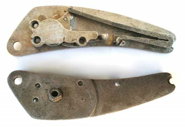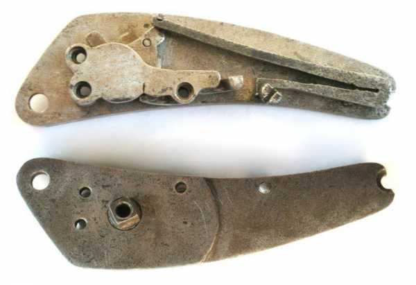 ΠΠ°ΠΏΡΡΠ»ΡΠ½ΡΠΉ Π·Π°ΠΌΠΎΠΊ ΠΊΡΠ΅ΠΏΠΈΡΡΡ Π² Π»ΠΎΠΆΠ΅ Ρ ΠΏΠΎΠΌΠΎΡΡΡ Π²ΠΈΠ½ΡΠ°, Π²ΠΊΡΡΡΠ΅Π½Π½ΠΎΠ³ΠΎ Π² ΡΠ΅Π·ΡΠ±ΠΎΠ²ΠΎΠ΅ ΠΎΡΠ²Π΅ΡΡΡΠΈΠ΅ ΡΡΠ΅ΡΠ³ΠΎΠ»ΡΠ½ΠΎΠΉ Π·Π°ΠΌΠΎΡΠ½ΠΎΠΉ Π»ΠΈΡΠΈΠ½Ρ. ΠΡΠ΅ΠΏΠ»Π΅Π½ΠΈΠ΅ ΡΡΠ²ΠΎΠ»Π° Π² ΠΏΠ΅ΡΠ΅Π΄Π½Π΅ΠΉ ΡΠ°ΡΡΠΈ Π»ΠΎΠΆΠΈ ΠΎΡΡΡΠ΅ΡΡΠ²Π»ΡΠ΅ΡΡΡ Ρ ΠΏΠΎΠΌΠΎΡΡΡ Π»Π°ΡΡΠ½Π½ΠΎΠ³ΠΎ ΠΊΠΎΠ»ΡΡΠ° β Π½Π°Π΄ΡΠ»ΡΠ½ΠΈΠΊΠ°. Π‘ΠΏΡΡΠΊΠΎΠ²Π°Ρ ΡΠΊΠΎΠ±Π° ΠΈ Ρ Π²ΠΎΡΡΠΎΠ²ΠΈΠΊ ΡΡΠΊΠΎΡΡΠΊΠΈ ΡΠ°ΠΊ ΠΆΠ΅ ΠΈΠ·Π³ΠΎΡΠΎΠ²Π»Π΅Π½Ρ ΠΈΠ· Π»Π°ΡΡΠ½ΠΈ.