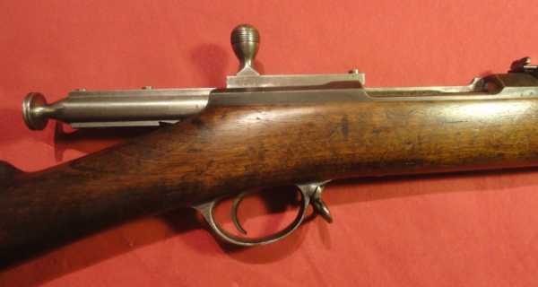 Однозарядная с продольно-скользящим затвором винтовка использовала унитарный патрон центрального воспламенения с металлической гильзой и дымным порохом.