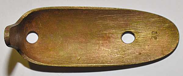 Затыльник казачьей винтовки. Бельгийцы старательно следили за качеством даже таких второстепенных частей винтовок. Везде стоят клейма инспекторов, а на косице затыльника — двуглавый орел русской приемки. |