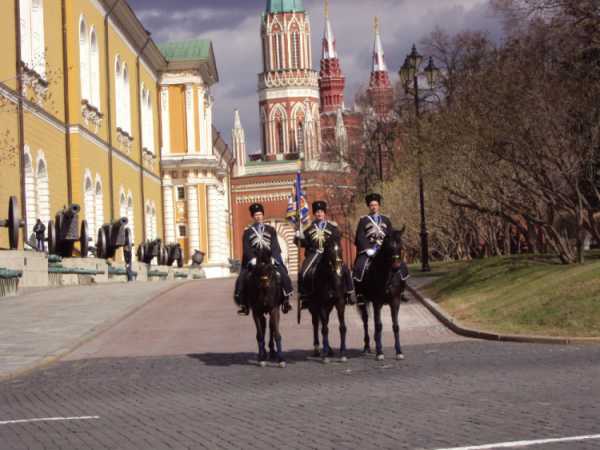 С апреля по октябрь по субботам в 12:00 на Соборной площади Московского Кремля будет проводиться Церемониальный развод конных и пеших караулов Президентского полка.