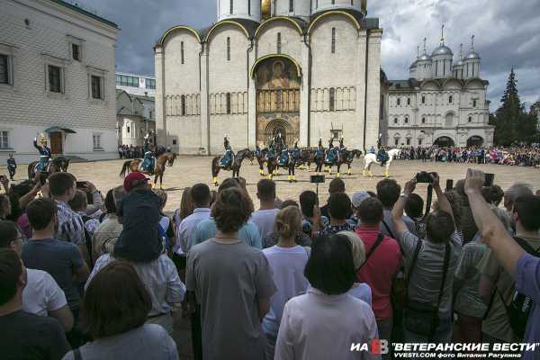 Кавалерия и пехотинцы Президентского полка показали эффектное выступление на глазах тысяч москвичей и гостей города. Церемонию развода караулов будут проводить каждую субботу до середины октября.