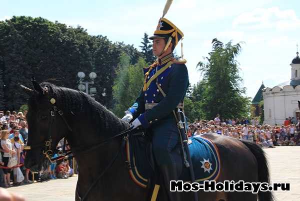 C апреля по октябрь на Соборной площади Кремля в 12:00 каждую субботу проходит развод конных и пеших караулов президентского полка.