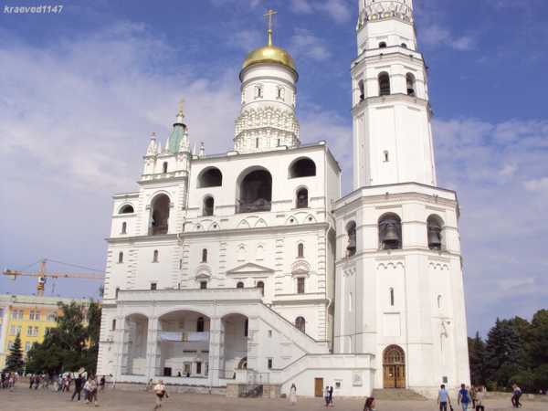 Можно попытаться встать на ступеньки колокольни Иван Великий (на фото справа).