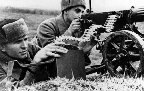 Пулеметный расчет на позиции на подступах к Москве. Западный фронт. 1941г.