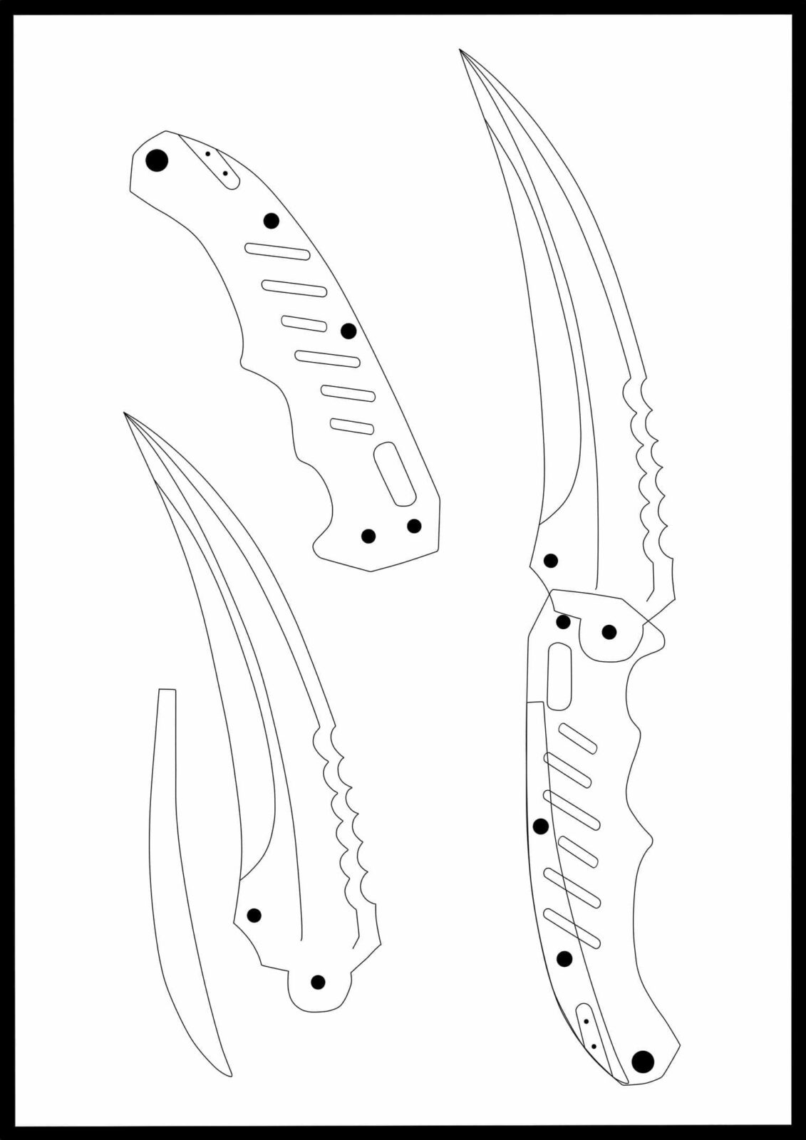 Если вы хотите распечатать нож, а потом его качественно нарисовать или сделать нож из гофрированного картона — то для этого мы прикрепили скриншоты, и с помощью их вы сможете сначала распечатать ножи, а потом уже делать то, что вам угодно. Скажу сразу, что сделать реальную копию ножа не так уж и легко, поэтому настраивайте себя на то, что вы хорошо попотеете. Сделав нож, кидайте в комментарии ссылки на фотографии и лучшие я буду публиковать в статье.