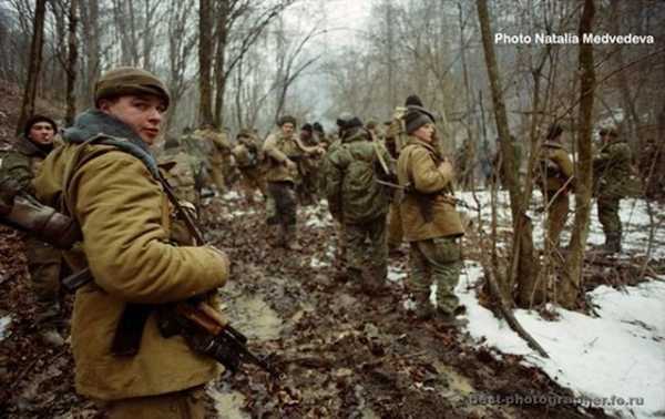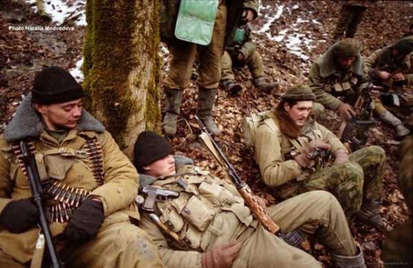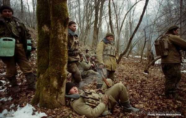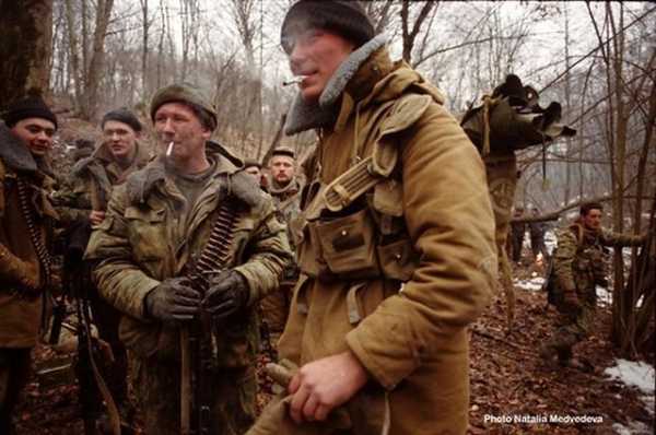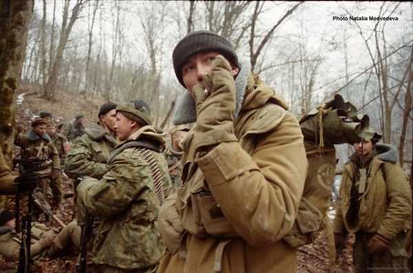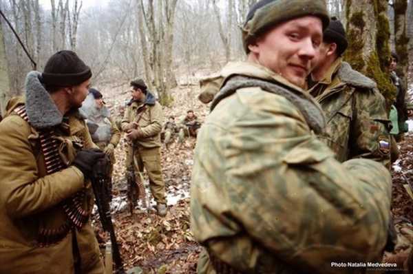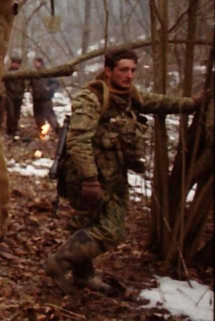 Поставили задачу выдвигаться вниз в Б. Харсеной. Выдвинулись – нас встретили плотным огнём. Отошли на поляну. Ёе прозвали – МЁРТВАЯ ПОЛЯНА. Уже начало темнеть – нам ставят задачу выдвигаться к третьей группе спецов – той, что уцелела, т.к. была в стороне. Рота отказалась выдвигаться ночью. КЭП передал, что после выполнения задачи рота будет вывезена в Моздок под трибунал. Короче, нам ещё сказали, что этот район в 6 утра будет накрыт артухой и летунами. Типа: хотите – оставайтесь. Утром собрали всех двухсотых и оттащили с поляны в лес, чтобы их не порвало. Тот район действительно накрыли – мы успели отойти. Дальше-веселее: голова засекла впереди двух духов, идущих впереди нас тем же курсом. Дальше они засветились перед 3-й группой спецов и ушли в сторону.