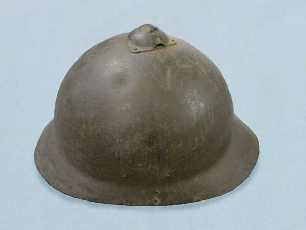 Французская каска Адриана М1915. Принята на вооружение в 1915 году. Лёгкий в изготовлении стальной шлем массой в 0,7–0,8 кг разошёлся по миру многомиллионными тиражами