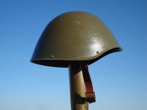 Болгарская каска M36. Выпускалась в трёх вариантах, первый из которых, тип А, был принят на вооружение в 1936 году. Тип С (на фотографии) поступил в войска в 1939 году и использовался в болгарской армии до 2010 года, когда был заменен на кевларовый шлем