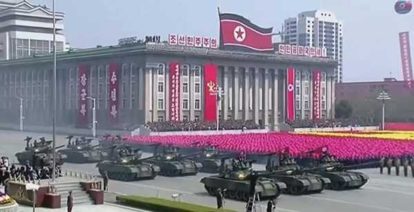 Танки «Чонма-216» выходят на площадь им. Ким Ир Сена. Кадр из телетрансляции
