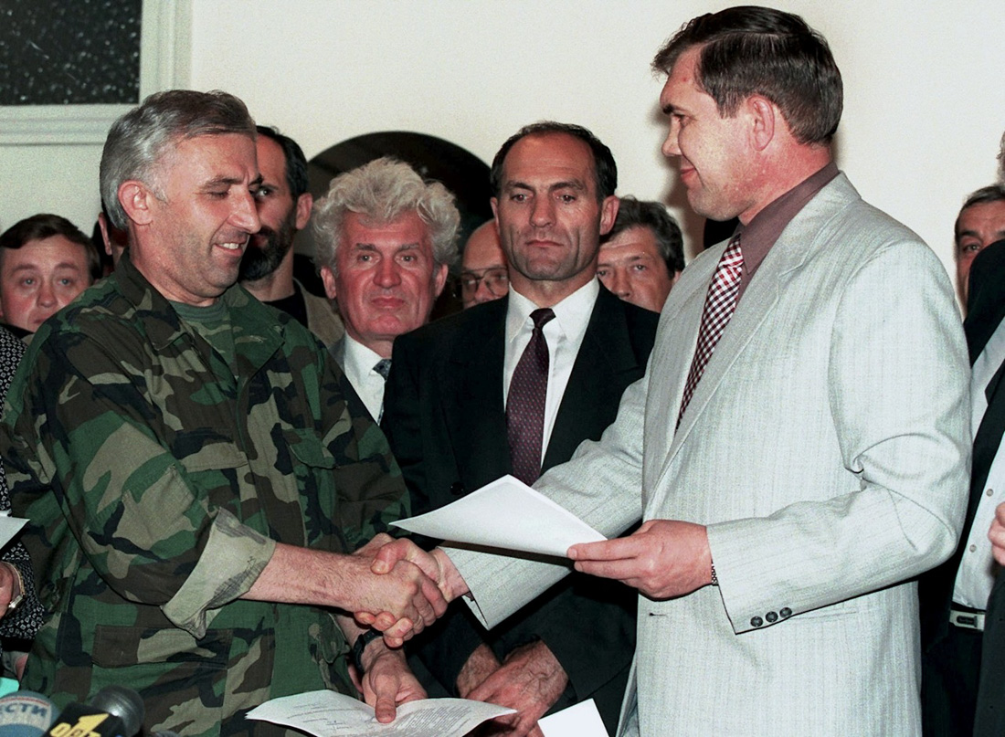 Хасавюртовские соглашения. Федеральные войска выводились из Чечни, а статус республики откладывался до 31 декабря 2001 года |