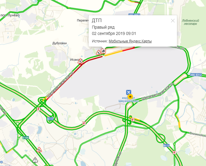 В ночное время путь от выезда из Лобни до аэропорта «Шереметьево» занимает всего несколько минут. По словам старожилов, столько же времени на это расстояние тратили лобненцы и в утренние часы лет 20–30 назад. В настоящее время жители доезжают до «Шереметьево» утром и в обратном направлении вечером за несколько десятков минут.