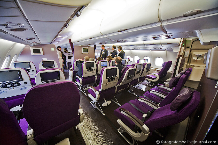 Инновационная система светодиодного освещения позволяет окрасить салон самолета в любой цвет: в палитру входит 16 миллионов оттенков. Судно рассчитано на 252 или 310 пассажиров в зависимости от компоновки. A330neo должен начать перевозки уже в 2017 году.