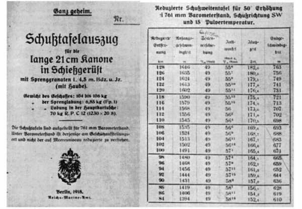 Таблица стрельбы для 21-см снаряда. Источник: Известия Российской Академии ракетных и артиллерийских наук