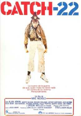 аварии. Еще в одной сцене помощник режиссера выпал из летящего самолета.Антивоенная комедия абсурда. Главный герой фильма — капитан Йоссариан, он наводчик бомбардировщика B-25. Йоссариан уже сделал 30 вылетов, хотя отпуск обещали после 25, а теперь планку подняли до 50 вылетов. Йоссариан пытается уговорить командир полка отстранить его от полетов, так как видит, что шансов дожить до 50 полетов немного — вокруг одни психи. Но командиру осталось служить до отпуска всего два месяца, и это при условии, что не произойдет никаких происшествий. Отстранить от полетов по заявлению он считает происшествием, а то, что все штатные парашюты уже обменены на египетские финики — ничего страшного. Йоссариан находит лазейку в параграфе 22, согласно которому отстранить от полетов можно только… смотреть фильм