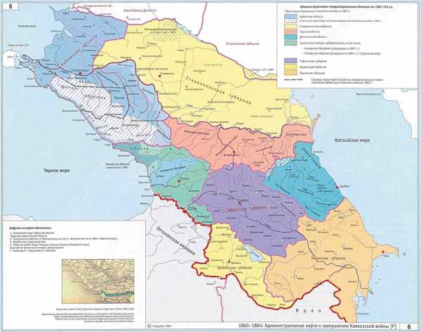 Политическая карта Кавказа 1860-1864 г. Страны «Грузия» нет вообще, есть несколько губерний.