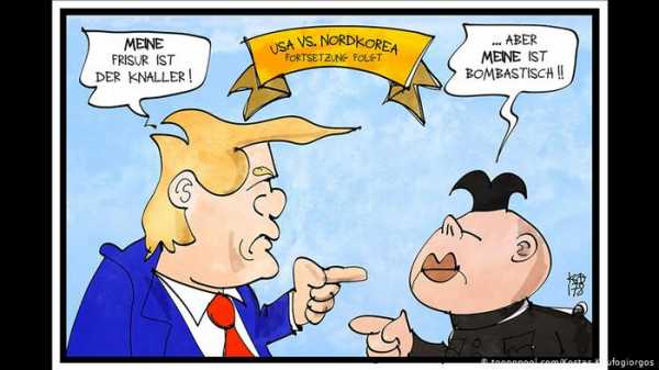 Прически Дональда Трампа и Ким Чен Ына — источник вдохновения для карикатуристов. Лидеры США и Северной Кореи пытаются выяснить, чей начес круче. «Моя прическа — огонь!», — уверяет Трамп. «Зато моя — настоящая бомба», — не уступает Ким.