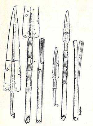 Крепление наконечников плоского типа, найденных на Кикладских островах и на Крите (XVI в. до н. э.)