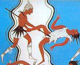 Короткие дротики использовались не только для метания, но также и в рукопашной схватке, о чем наглядно говорить фреска из Пилоса, где один из сражающихся колет им своего противника в пах. Интересно, что хотя сам воин практически обнажен, на голове у него опять-таки шлем из кабаньих клыков, а на ногах – обувь, закрывающая стопу и поножи.
