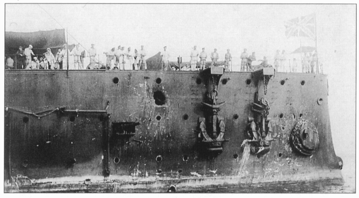 Повреждения носовой части крейсера «Аврора» в Цусимском бою, июнь 1905 года