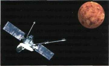 Меркурий сложно увидеть из-за его близости к Солнцу. Наблюдать планету можно только в очень короткие промежутки времени, всегда низко над горизонтом, сквозь атмосферную дымку на фоне утренней зари или по вечерам сразу после заката. Особенности расположения Меркурия затрудняют исследования планеты, что в свое время породило некоторые заблуждения. Иоганн Шретер (1745-1816) на основании слабо различимых деталей на Меркурии, сделал ложный вывод о том, что период вращения планеты вокруг собственной оси составляет 24 часа. В 80-х годах XIX в. итальянский астроном Джованни Скиапарелли (1835-1910) пришел к заключению, что эта планета оборачивается вокруг своей оси и вокруг Солнца за одинаковый промежуток времени. В таком случае меркурианские сутки оказались бы равны меркурианскому году, и к Солнцу всегда было бы обращено одно и то же его полушарие. И лишь в 1965 г. с помощью радиолокационных наблюдений на крупнейшем радиотелескопе в Аресибо (Пуэрто-Рико) американские ученые Г. Петтенгилл и Р. Дайс впервые надежно определили, что Меркурий делает один оборот вокруг оси за 58,6 земных суток, что в точности равно 2/3 орбитального периода (меркурианский год равен 88 земным суткам). Солнечные сутки — период между двумя восходами Солнца — там длятся 176 земных суток. До сих пор Меркурий лишь однажды исследовался космическим аппаратом. Американский КА Mariner-10 массой 525 кг был запущен 3 ноября 1973 г. с помощью ракеты-носителя Atlas-Centaur. 4 февраля 1974 г. он пролетел на расстоянии 5740 км от Венеры, увеличив при этом свою скорость на 4,5 км/сек. Отклонение на 1 км от расчетной траектории вблизи Венеры грозило отклонением на 1000 км около Меркурия. Однако все параметры этого маневра были очень близки к расчетным, и 29 марта 1974 г. Mariner-10 пролетел Меркурий на расстоянии 720 км. Выход из сферы действия Меркурия был рассчитан так, чтобы аппарат перешел на гелиоцентрическую орбиту с периодом обращения 176 суток. Полет станции Mariner-10 считается исключительно успешным — вместо намеченного по плану одного раза он провел исследования планеты трижды. Следующие встречи с Меркурием состоялись 21 сентября 1974 г., на расстоянии 48 000 км, и на наименьшем расстоянии — 327 км — 16 марта 1975 г. Но за три сеанса фотографирования получены снимки лишь западного полушария планеты. Всего было отснято около 45% поверхности. На этом связь со станцией прервалась. Удивительным открытием во время первого пролета станции Mariner-10 было обнаружение ударной волны плазмы и магнитного поля вблизи Меркурия. Во время третьего пролета Меркурия принадлежность магнитного поля планете была окончательно подтверждена. Оно имеет более сложную структуру, чем земное, но значительно слабее (всего 0,7 %) магнитного поля нашей планеты. Кроме дипольного (двухполюсного) в магнитосфере планеты присутствуют еще поля с четырьмя и восемью полюсами. Со стороны Солнца магнитосфера Меркурия сильно сжата под воздействием солнечного ветра. Наклон оси диполя к оси вращения планеты почти такой же, как и у Земли — 12°. Единственным наиболее правдоподобным объяснением природы меркурианского магнитного поля может быть наличие в недрах планеты частично расплавленного металлического ядра, подобного земному. Существует несколько гипотез, объясняющих высокую плотность Меркурия при его сравнительно небольшом диаметре. Согласно современной теории образова
