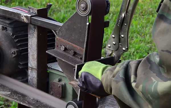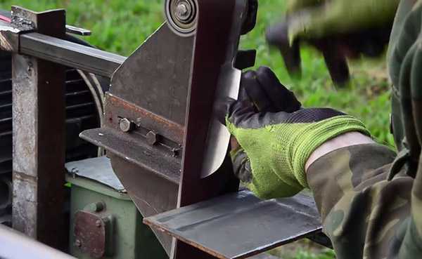 - Гриндер – это вариант заточного станка, отличительная особенность заключается в использовании ленты с абразивным покрытием, склеенной в кольцо. С помощью гриндера формируют ровные спуски под заданным углом.