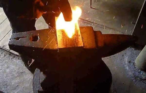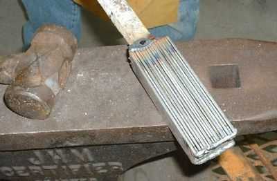 Ковка с помощью легкого молотка позволяет придать прямоугольную форму. Сначала уплотняется поверхностный слой.
