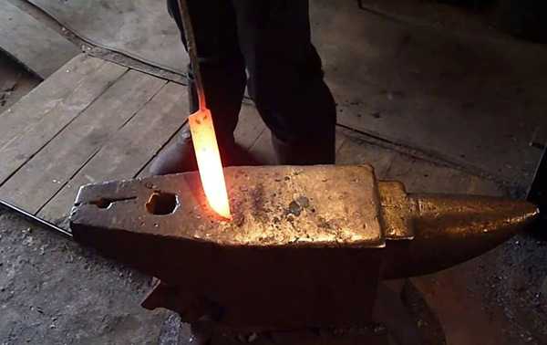 Клинок приобретает нужную форму. Нагрев более 900 ⁰С делает металл весьма пластичным.