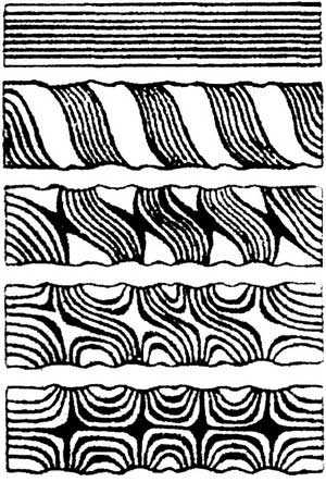- струйчатый и волнистый, в результате чередования прямых и кривых линий;
