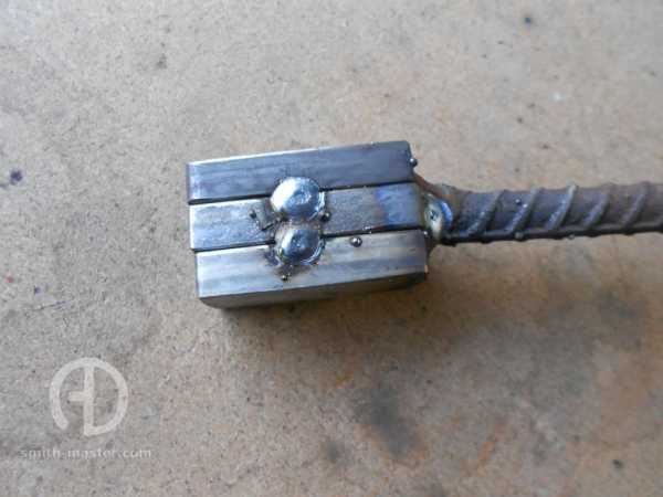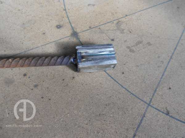 Кузнечная сварка проходит при температурах близких к 1100-1200 °С, это соответствует соломенно-желтому/белому цвету каления стали, и у меня, к сожалению, не было возможности сфотографировать сам процесс сварки. (кузнечной сварке будет посвящена отдельная статья) в качестве флюса я использовал прокаленный кварцевый песок.