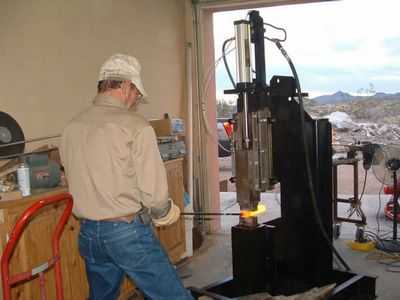 Наличие кривошипного молота помогает проковывать заготовку серией многочисленных ударов. Пневматический или гидравлический пресс используют для объемного обжатия металла. Одним движением придается нужная геометрия.