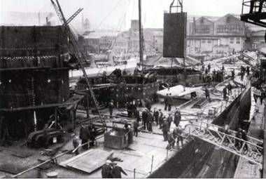 Все фотографии сделаны во время постройки линейного крейсера «Худ» на верфи Джона Брауна в Клайдебэнке. Первый снимок сделан на очень ранней стадии постройки во время сборки киля линейного крейсера, четвертый – фото финальной стадии постройки, сделанное незадолго до спуска корабля на воду.