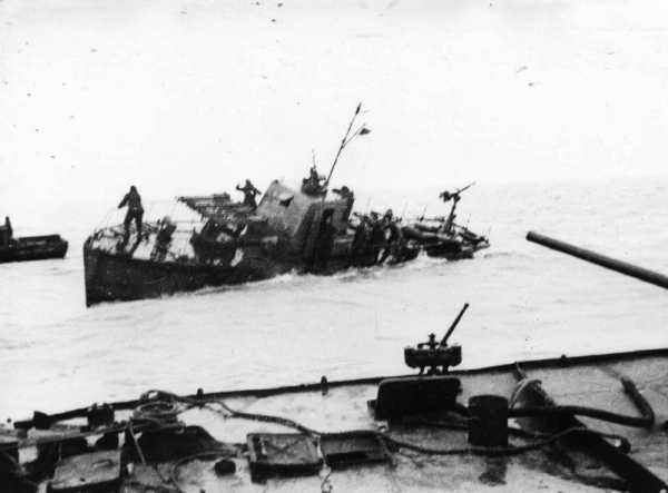 Советский минометный катер типа «Я-5», поврежденный в ходе Керченско-Эльтигенской десантной операции. Ноябрь 1943 г.