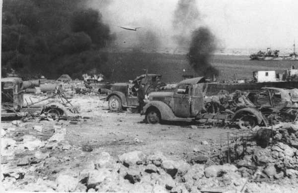37. Уничтоженная немецкая техника на берегу Казачьей бухты в Севастополе. Май 1944