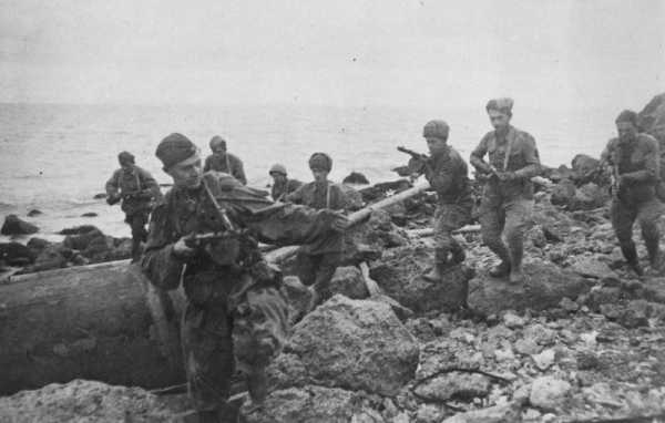 62. Бойцы 2-й гвардейской Таманской дивизии в боях за расширение плацдарма на Керченском полуострове, ноябрь 1943 г. С разгромом немецких войск на Таманском полуострове открылся путь к Керченскому проливу, чем и воспользовались гвардейцы при высадке для захвата плацдарма в пока еще занятом немцами Крыму. Ноябрь 1943