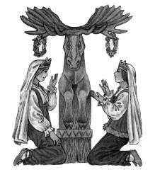 Древние язычники поклонялись природным стихиям. Они верили, что произошли от диких животных, поэтому уважали зверей, как собственных предков. Хозяином леса считался медведь. С пробуждением медведя от зимней спячки славяне связывали весеннее пробуждение природы. Медведь считался самым мудрым зверем и защищал от всевозможных бед. Имя священного медведя было столь почитаемо, что его не произносили вслух. Его называли Михайло Потапычем, Топтыгиным или Мишкой. Богиней плодородия считалась Олениха (лосиха). Ее рога были символом солнечных лучей. Считалось, что оленьи рога, прикрепленные над входом в избу, защищают от любого колдовства. Женщины носили «кичку» – головной убог с рогами, сделанными из ткани. Кичка возвеличивала свою владелицу, уподобляя ее богине плодородия.
